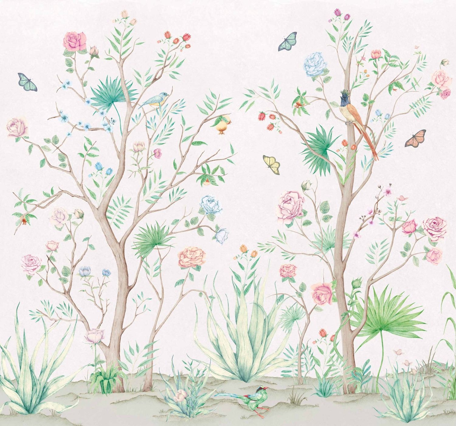 De collectie ‘Random Chinoiseries II’ van Coordonné is geïnspireerd op beroemde fresco’s met oosterse invloeden van de extravagante landschappen die ooit de muren sierden van oude Japanse en Chinese dynastieën. Een overvloed aan ornamenten dompelt de toeschouwer onder in een utopische omgeving, waar berglandschappen, grillige bloemen, vogels en unieke wezens verwondering oproepen.