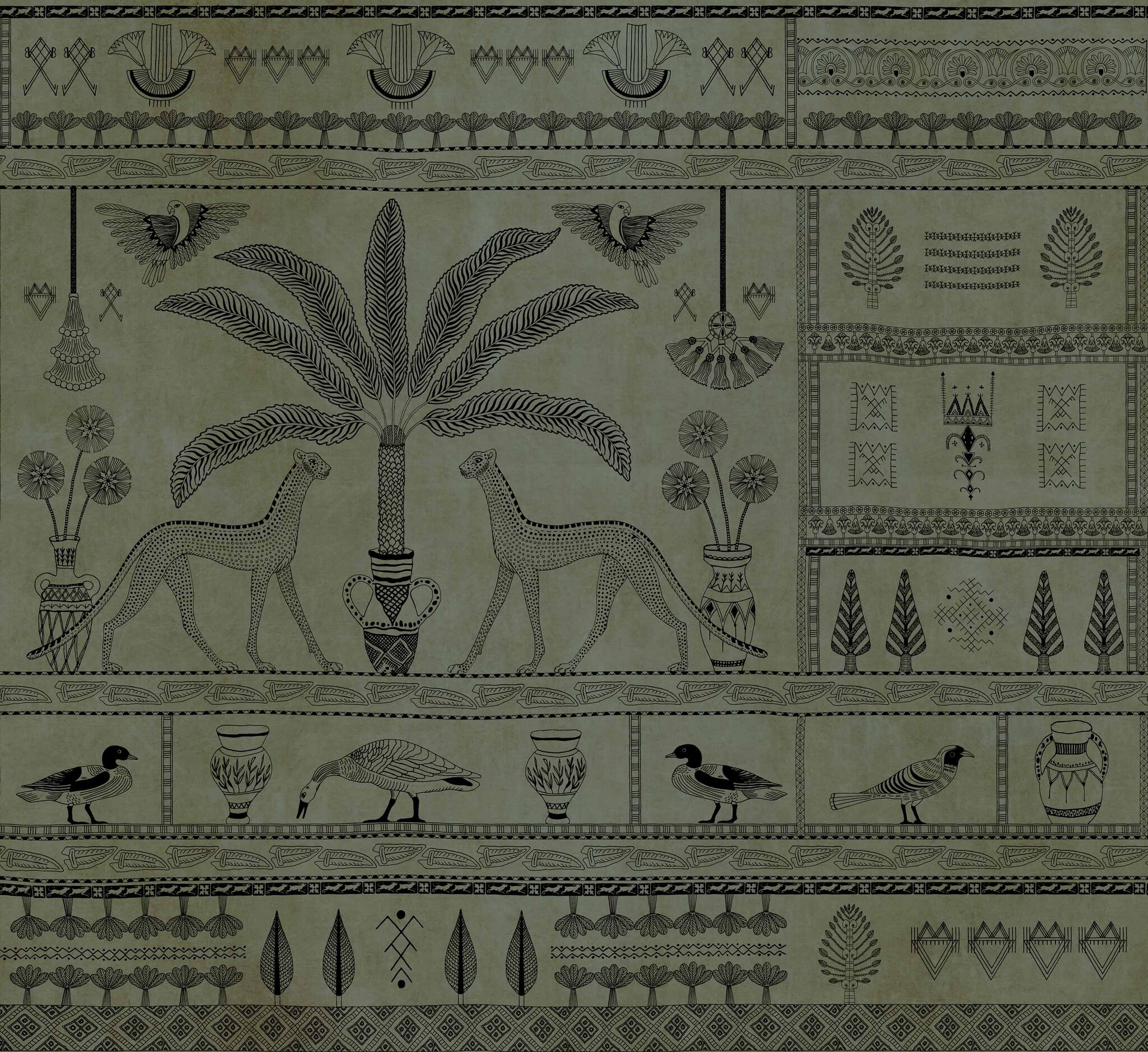 Materiaal: Vliesbehang of bamboe op vliesbehang