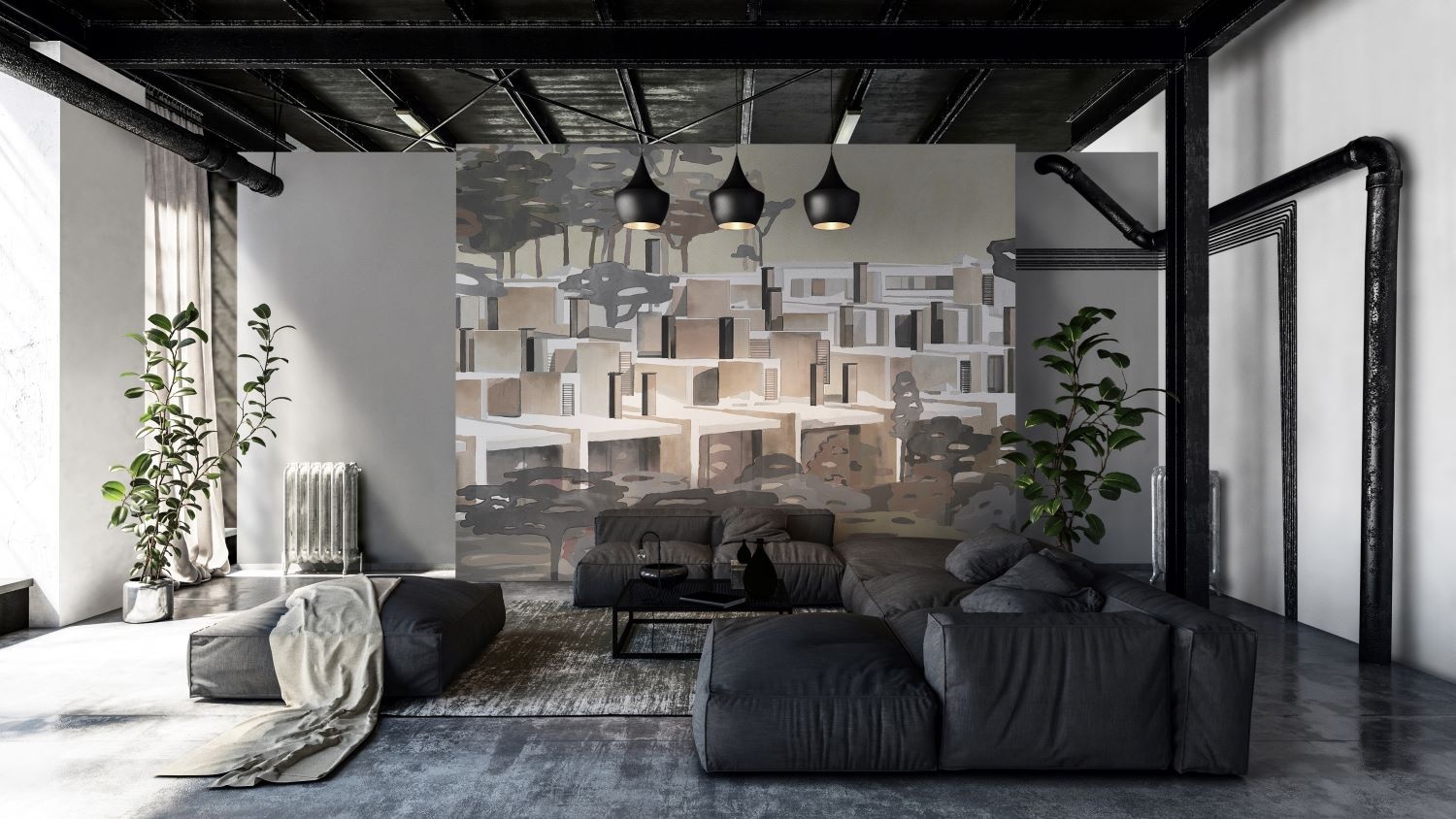 Het bijzondere Spaanse Coordonne behang is industrieel en vintage en heeft een eigen karakter.