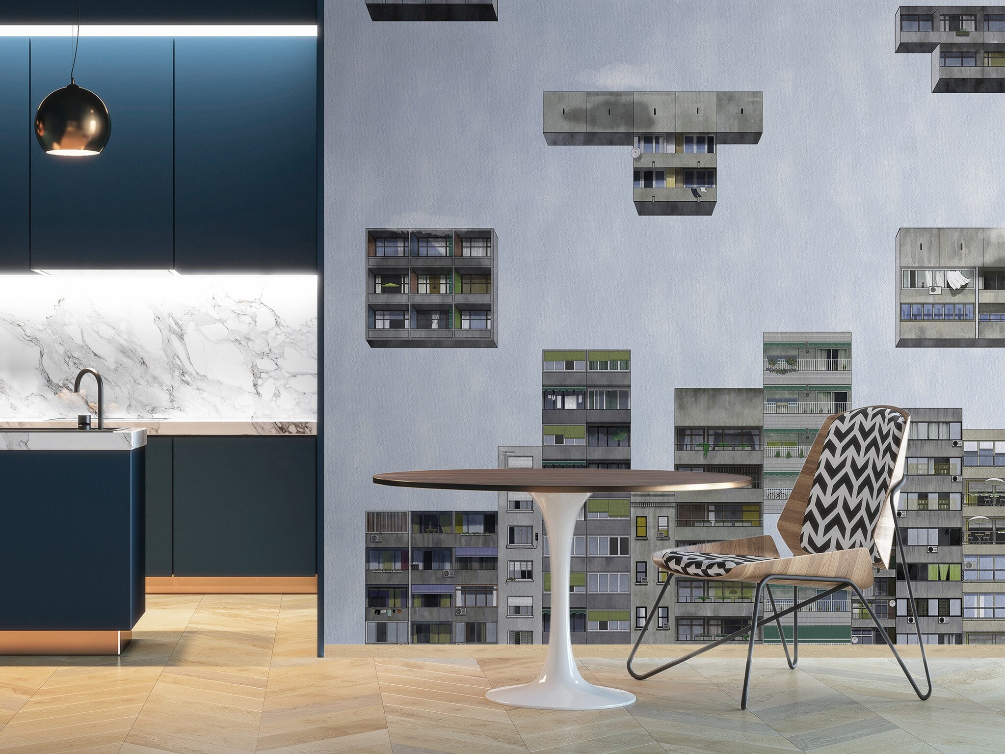 Coordonné behang Tetris Sunrise - 9000040