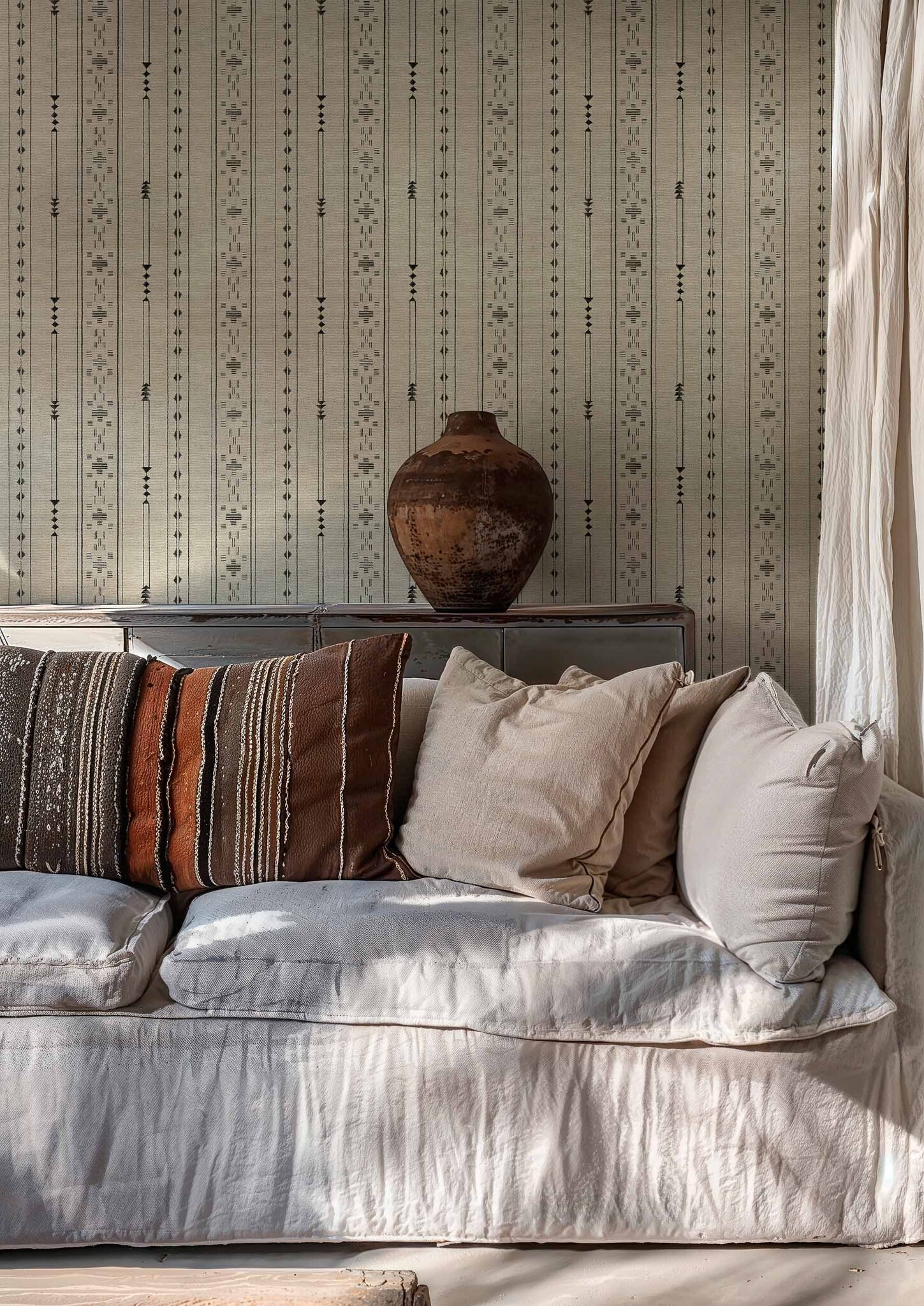 Het bijzondere Spaanse Coordonne behang is industrieel en vintage en heeft een eigen karakter.