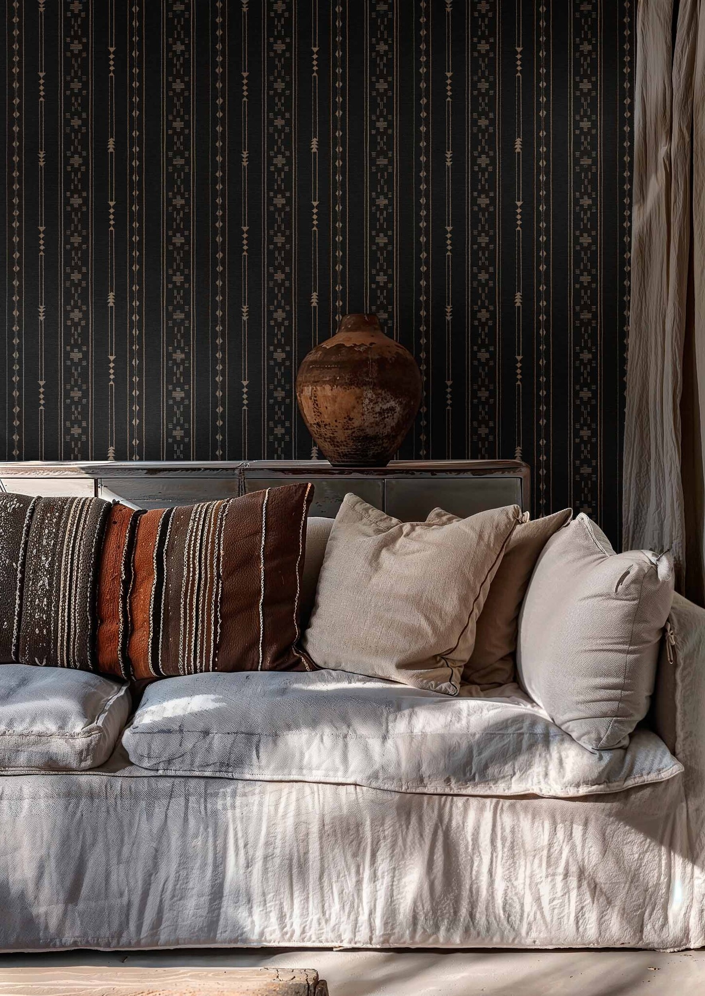 Het bijzondere Spaanse Coordonne behang is industrieel en vintage en heeft een eigen karakter.