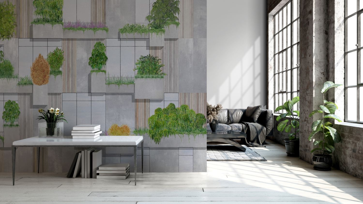 Het bijzondere Spaanse Coordonne behang is industrieel en vintage en heeft een eigen karakter.