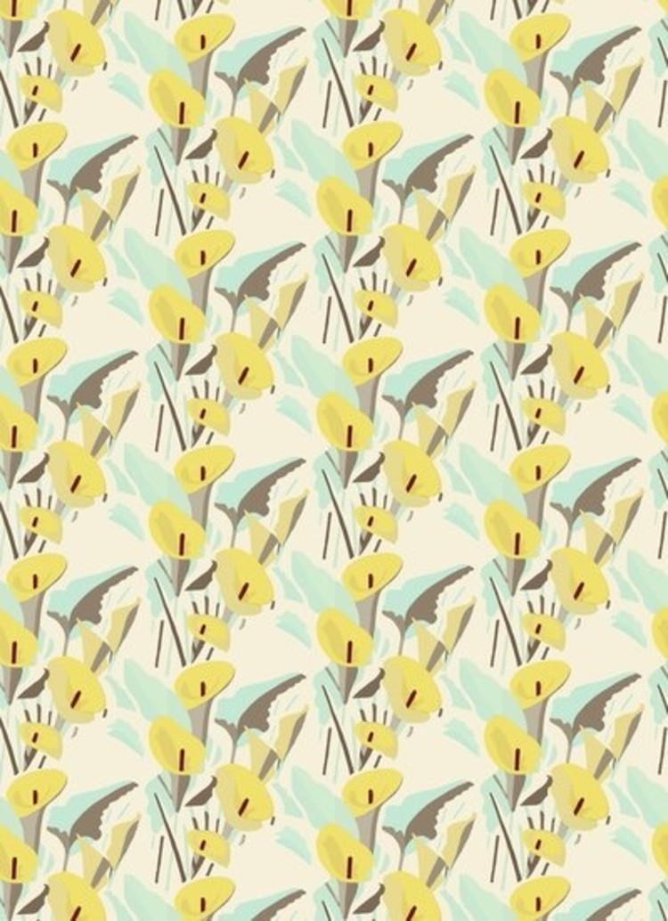 Elitis Arum behang toont een grafische tekening van een aronskelk. Deze tropische superster is een echte blikvanger.