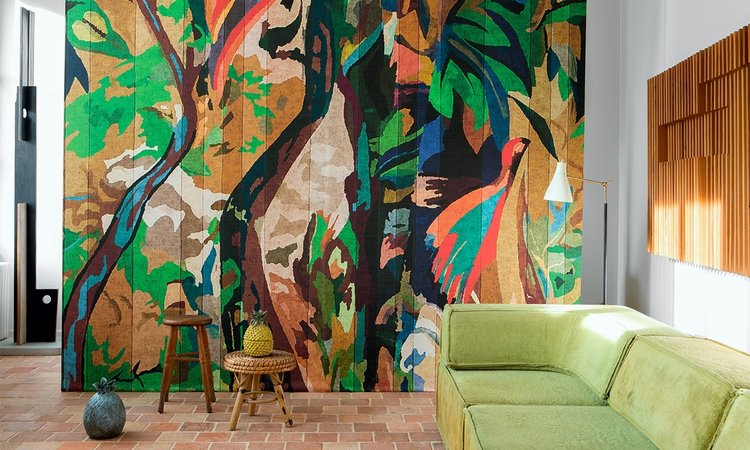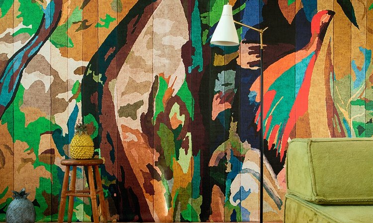 ELITIS Bégur paneelbehang heeft een prachtige structuur van raffia uitgevoerd in vinyl, en voorzien van verschillende kleuren. Dit behang is een tropisch paneelbehang waarin twee kleurrijke vogels te zien zijn. Een jungle waar van alles in gebeurd, je blijft ontdekken. Dit behang geeft leven aan uw interieur.