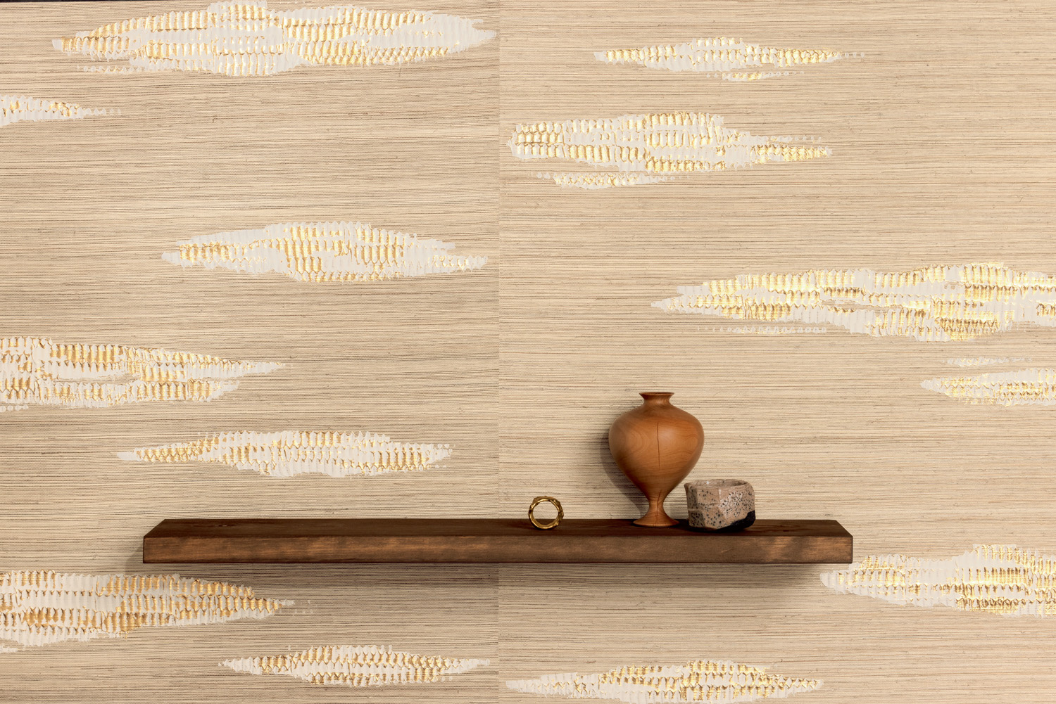 Urban chic in zijn puurste vorm: waar ruw en verfijnd samenkomen en plantaardige materialen worden gecombineerd met artistieke elementen. Strakke lijnen in goud, zilver en koper op een gesso-ondergrond geven een subtiele luxe. Wolken en sterren versterken dit gevoel met hun heldere contouren. Neutrale, natuurlijke tinten zorgen voor een rustige en elegante sfeer.