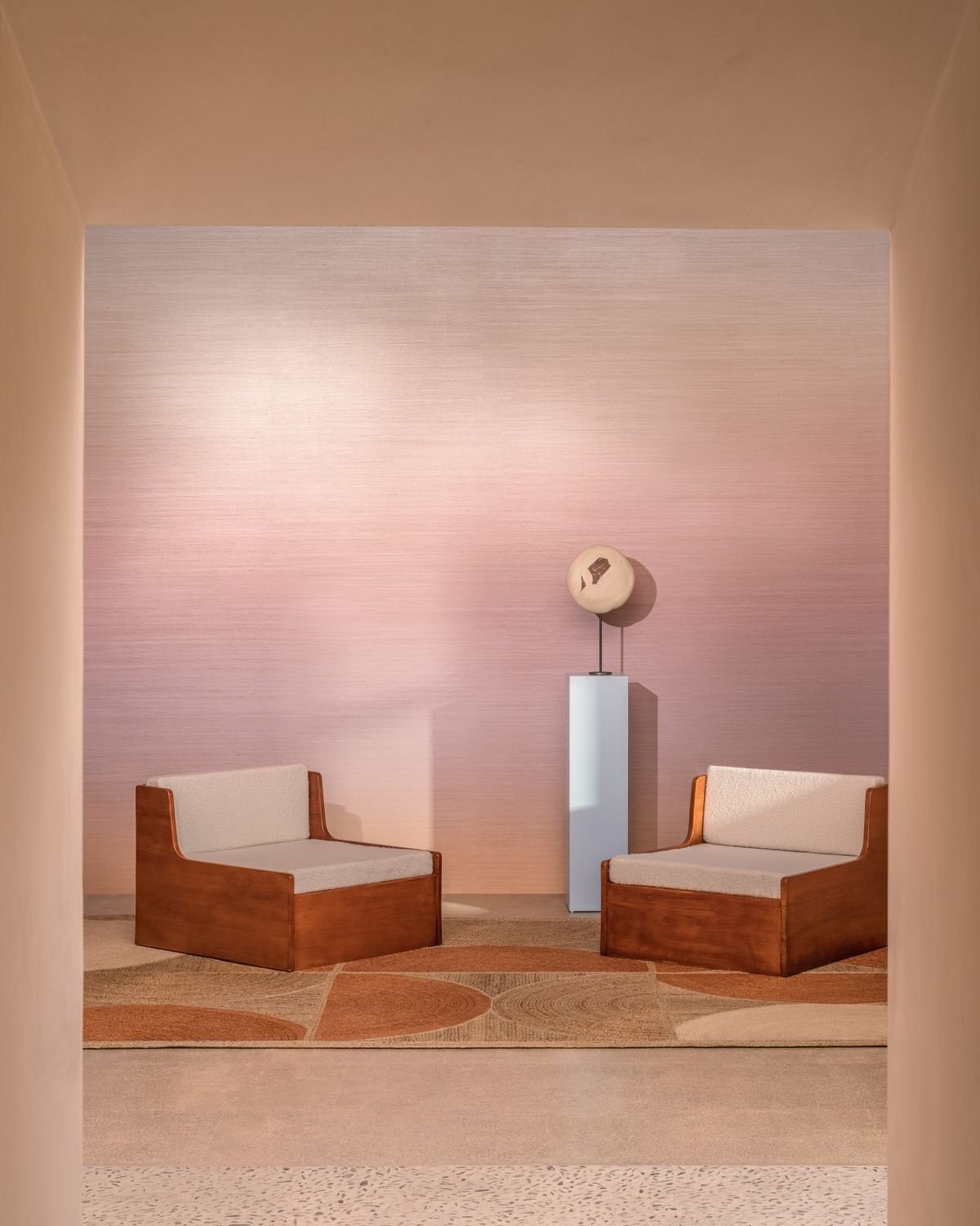 Deze collectie van Elitís laat de magische momenten zien waarop de lucht verandert bij zonsopgang en zonsondergang. De kleuren lopen vloeiend in elkaar over, gedrukt op natuurlijk sisal. Je ziet zachte roze tinten, kalm blauw, fel rood en warm goud, net als in de lucht op deze bijzondere momenten.