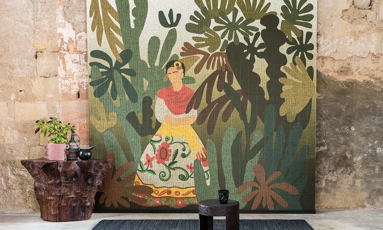 ELITIS La passion de Diego behang is een behang paneel van de hand van ELITIS. Dit behang met reliëf is een eerbetoon aan natuurlijke vezels en vakmanschap en doet denken aan het ambachtelijke vlechtwerk van riet. Dit paneel bestaat uit een botanische print van bladeren en palmen met een Mexicaanse vrouw.