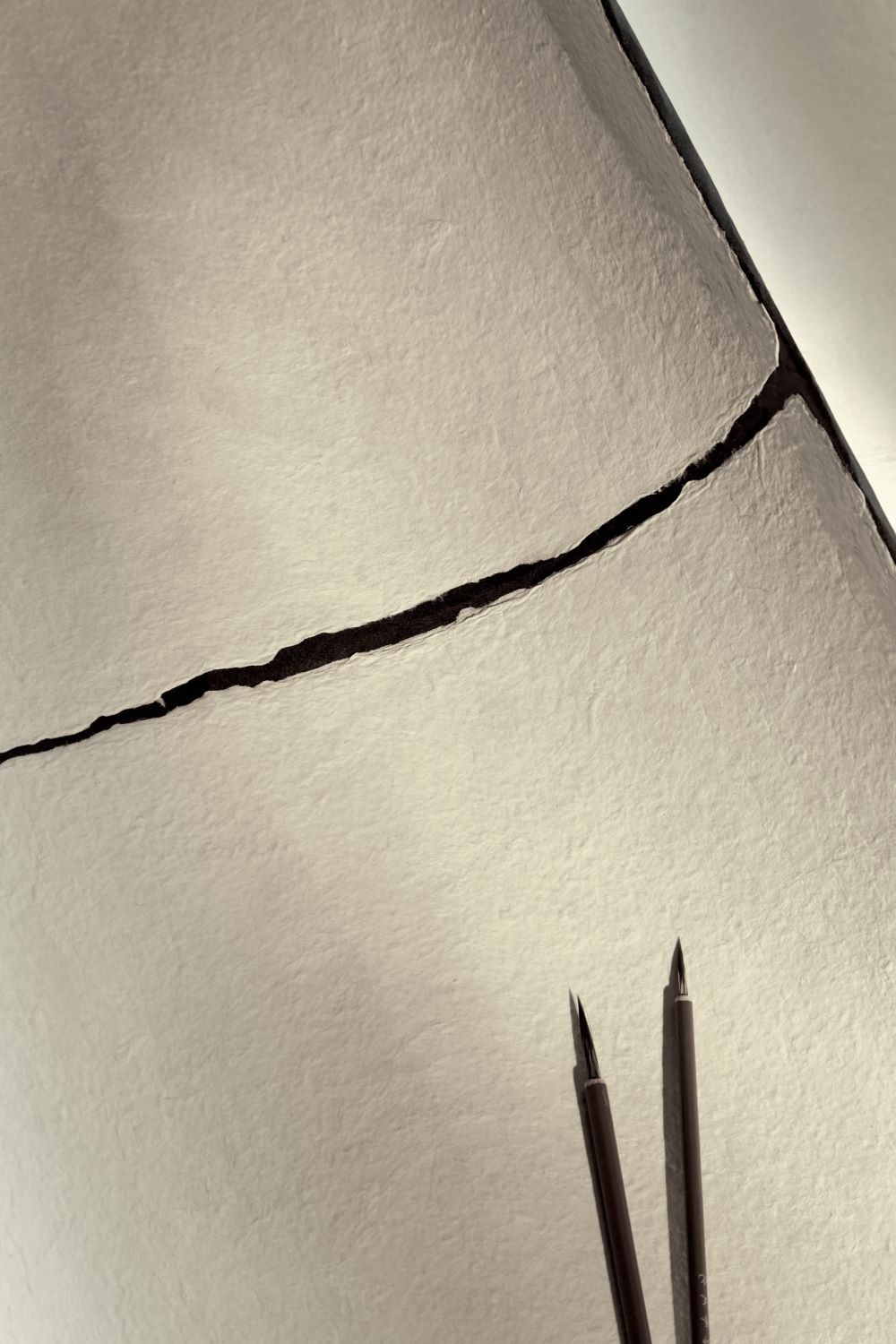 De collectie Hanji toont gedurfde patronen en texturen. Van de fluwelige tonen van ton-sur-ton tot de contrasten van goud- of parelmoertinten tegen mat papier: alles is een spel van licht.
