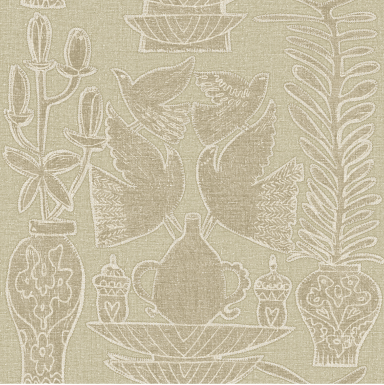 Paros is een behang met een echte linnen look, compleet met een wervelend patroon vol vogels, planten, vazen en potten. Deze muurbekleding van Elitis uit de Lin Brodés collectie heeft een verweving die gelijkend is aan de rustieke stof, met een fraai opstaand die textuur toevoegt aan jouw muur. Een natuurlijk behang dat perfect is voor een warm, luxe en sfeervol interieur.