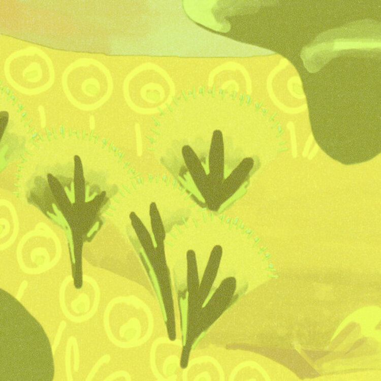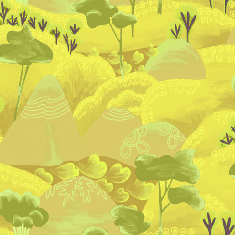 ELITIS Rêves de Manille Behang toont een magisch berglandschap waarin sierlijke bomen en struiken worden omgeven door bergen waarvan de bergtoppen door verschillende patronen zijn versierd. De designers van dit behang hebben zich laten inspireren door idyllische landschappen.