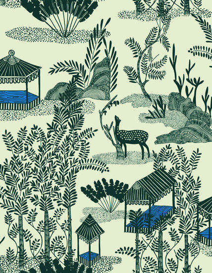 ELITIS Siam behang is een prachtig behang met Aziatische uitstraling. De geïllustreerde, sierlijke bomen, struiken, hertjes en culturele architectuur zorgen voor een vrolijke touch aan uw interieur. De designers van dit behang hebben zich laten inspireren door idyllische landschappen.