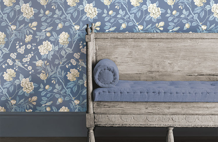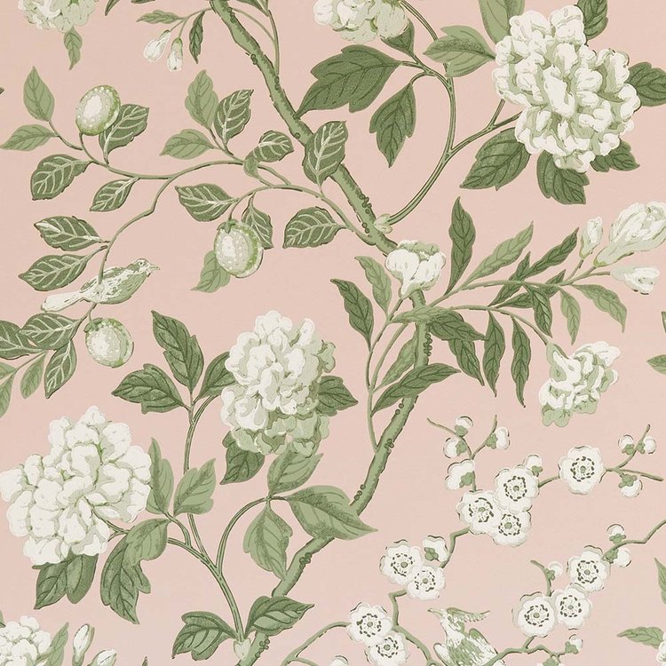 Het GP&J Baker Emperor's Garden Wallpaper is gebaseerd op een handgeschilderd Chinees behang. Het dessin is voorzien van een romantisch behang met weelderige bloemen zoals pioenrozen, maar ook kersenbloesem en paradijsvogels. Het ontwerp werd ontdekt in een herenhuis in Kent en vakkundig vertaald naar deze verbluffende nieuwe versie.