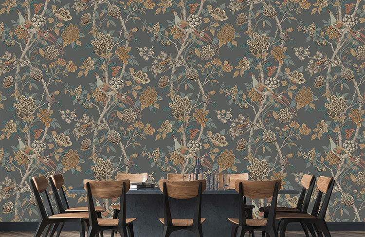 William Turner, destijds een bekende textielontwerper, schilderde het GP&J Baker Hydrangea Bird Wallpaper in 1917. Dit enorm succesvolle ontwerp is vandaag, meer dan een eeuw later, nog steeds populair. Het behang, met fazanten in een exotische bloeiende boom, is geïnspireerd op een Chinees behang uit de late 18e eeuw. Er zijn twee kleuren om uit te kiezen.