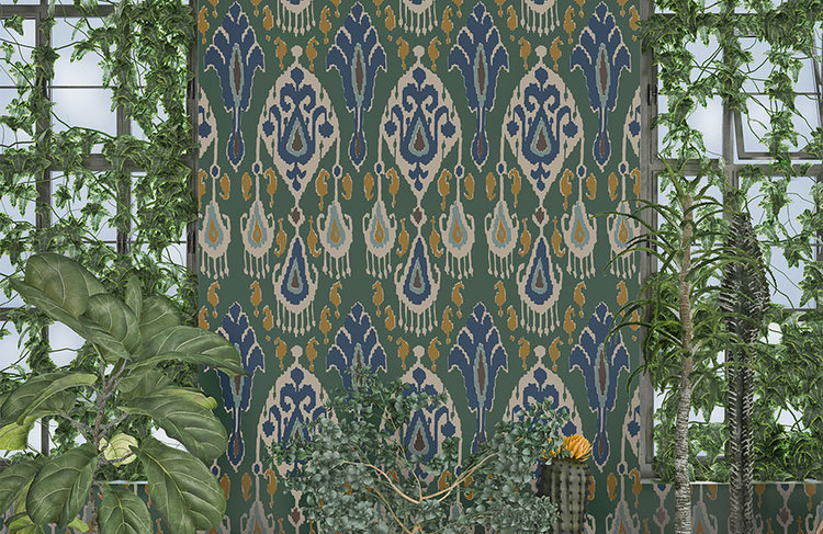 Het GP&J Baker Ikat Bokhara Wallpaper heeft een opvallend ikatpatroon. De woestijnoases aan de zijderoute van Bokhara, Samarkand en Kashgar waren in de negentiende eeuw beroemd om hun fijne zijden ikats. Dit ontwerp komt uit het archief; de originele versie is gemaakt in 1906. Het Bokhara-behangpalet bevat zachtere tinten lichtroze en zand om dimensie toe te voegen aan de gewaagde patronen van het ikat-ontwerp.