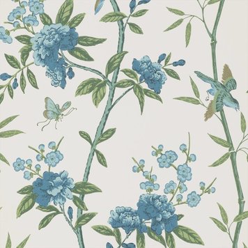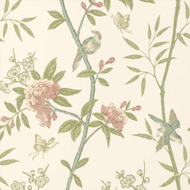 GP&J Baker's Peony & Blossom behang is voorzien van magnolia's en pioenrozen in een prachtig dessin. Dit bloemenbehang is voorzien van rondvliegende vogels en vlinders.