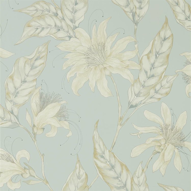Handgetekend in pen en waterverf, dit prachtige eigentijdse behang is versierd met gestileerde tropische bloemen. Met zijn delicate schilderachtige look en zachte kleurenpalet voegt ingewikkeld lijnwerk details toe aan dit elegante ontwerp.