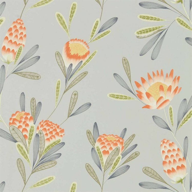 Dit levendige behang heeft een bloemenparcours gedrukt in gestructureerde en krijtachtige afwerkingen op een reeks metallic en vlakke achtergronden. Een gastvrije toevoeging aan gangen en ziet er goed uit naast de stof met dezelfde naam.