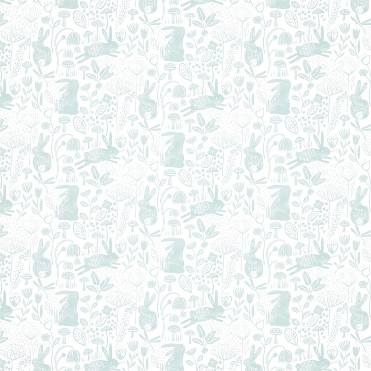 Into The Meadow behang. Een betoverend boslandschap van stuiterende konijntjes die tussen gras en bloemen spelen. Zie jij de radijs, vers en lekker, klaar voor onze vrienden om te knabbelen? Van zonsondergang tot zonsopgang eindigt het plezier nooit in deze klassiek Engelse behangscène.