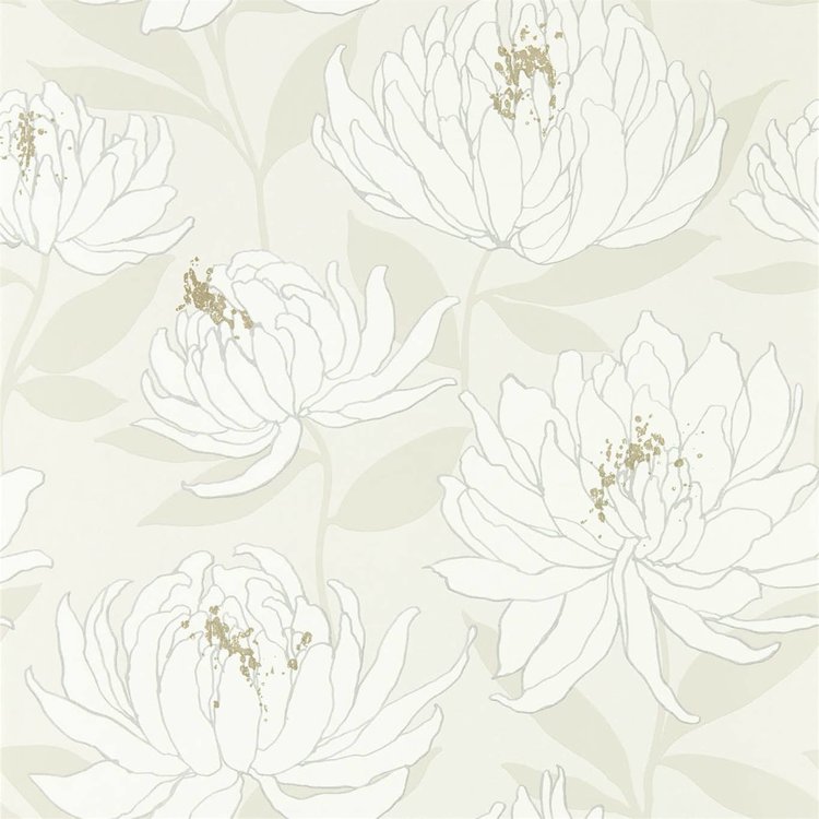 Glorieuze chrysantenbloemen met delicate metallic accenten bloeien op dit behang. Verkrijgbaar in lichte, midden en donkere kleurstellingen