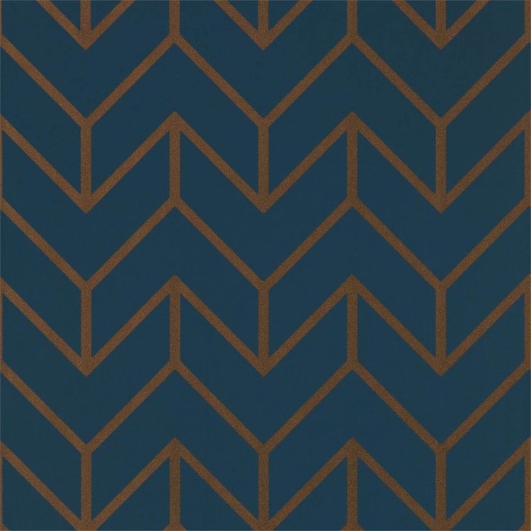 Een opvallend behang van Harlequin Momentum met grafische metallic lijnen in een herhalend geometrisch tegeleffect.