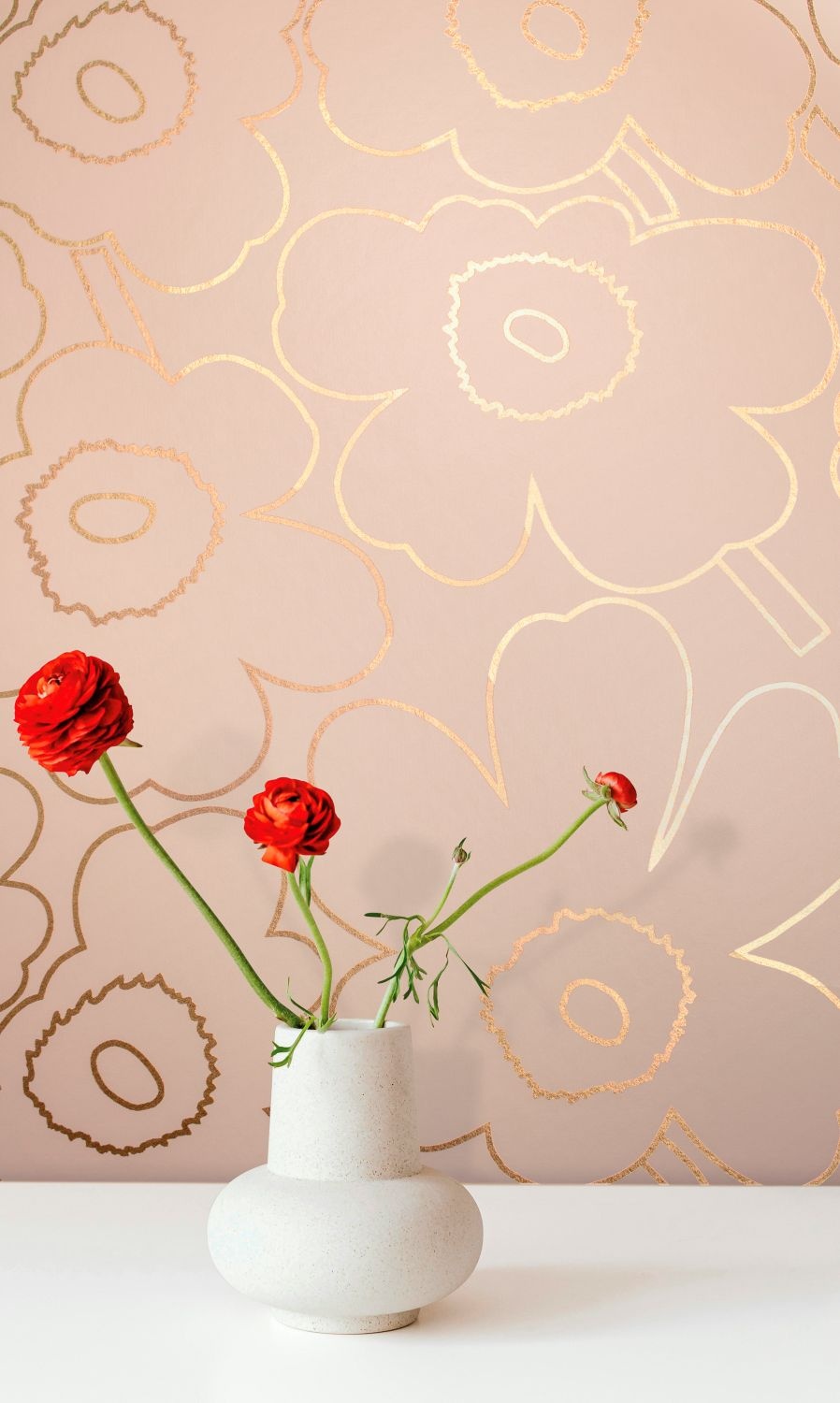 De originele Marimekko-bloem werd 60 jaar, maar is nog steeds springlevend. Ter ere van deze bijzondere mijlpaal werd deze nieuwe behangcollectie gelanceerd, vol levendige prints. De florale tekeningen zijn aangevuld met speelse grafische patronen.