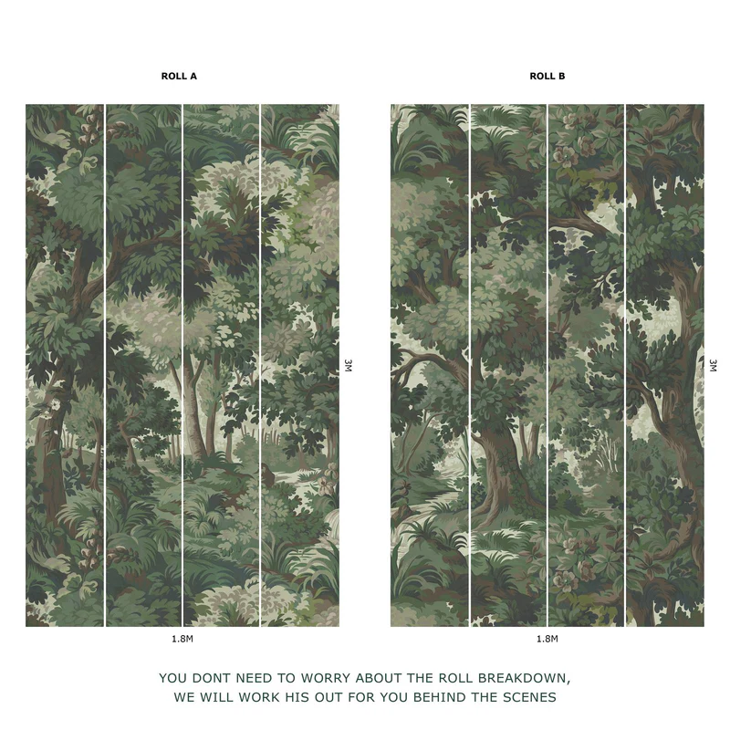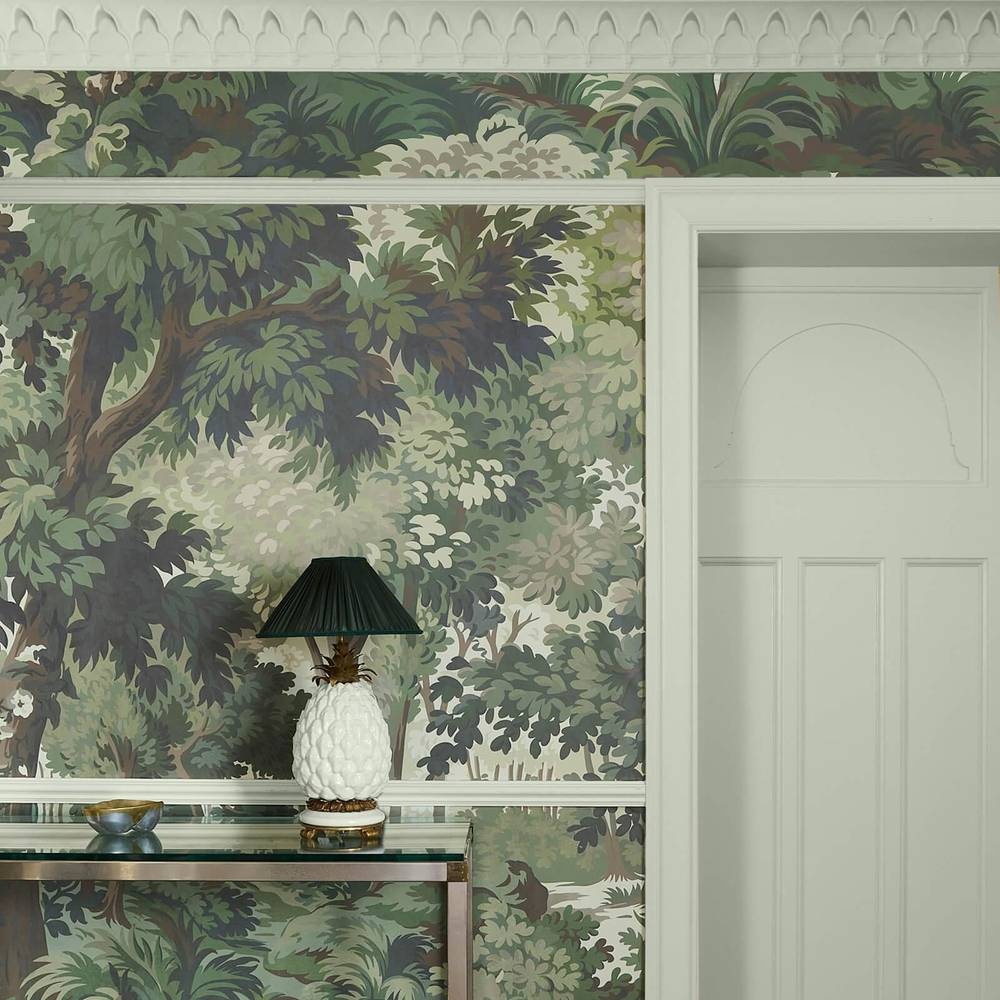 Reis door de boomrijke genoegens van Franse historische archiefprenten en 16e-eeuwse 'verdure'-tapisserieën met ARBOREA; een weelderig groene muurschildering-behang ontworpen om een vleugje van de oude wereld in je huis te brengen. Het ARBOREA behang is ideaal voor klassieke, eclectische, landelijke en bohemien interieurs, waar het met zijn weelderige, historische uitstraling een sfeervolle en karaktervolle blikvanger vormt.
