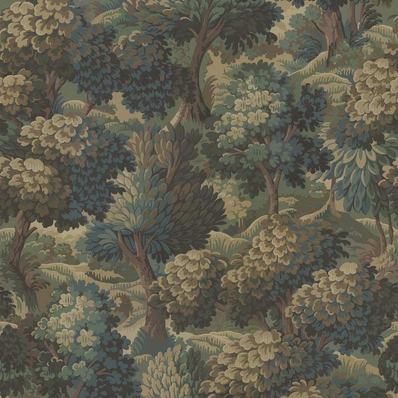 Ontsnap naar een weelderig, bosrijk toevluchtsoord met NEMOR. Deze altijd groene print, die doet denken aan antieke wandtapijten vol bladerpracht, brengt de schoonheid van het woud in je huis. Dit behang is ideaal voor klassieke, landelijke, bohemian en eclectische interieurs, maar ook voor moderne ruimtes die een natuurlijk, sfeervol accent kunnen gebruiken.