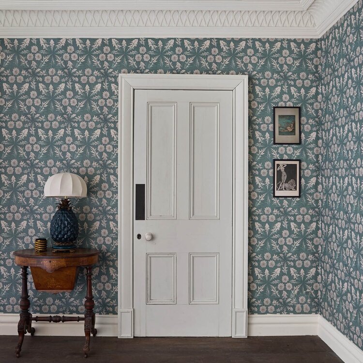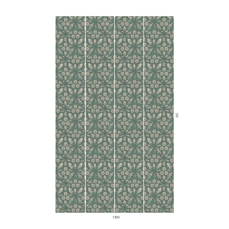 Vier de schoonheid van wilde planten met TARAXA. Dit betoverende botanische ontwerp, gebaseerd op een geometrisch archiefpatroon, beeldt de sierlijke paardenbloem uit, waarvan wordt gezegd dat hij genezing brengt en wensen meedraagt op de wind. Dit serene groene behang is de perfecte manier om de herstellende magie van de natuur in slaapkamers en badkamers te brengen.