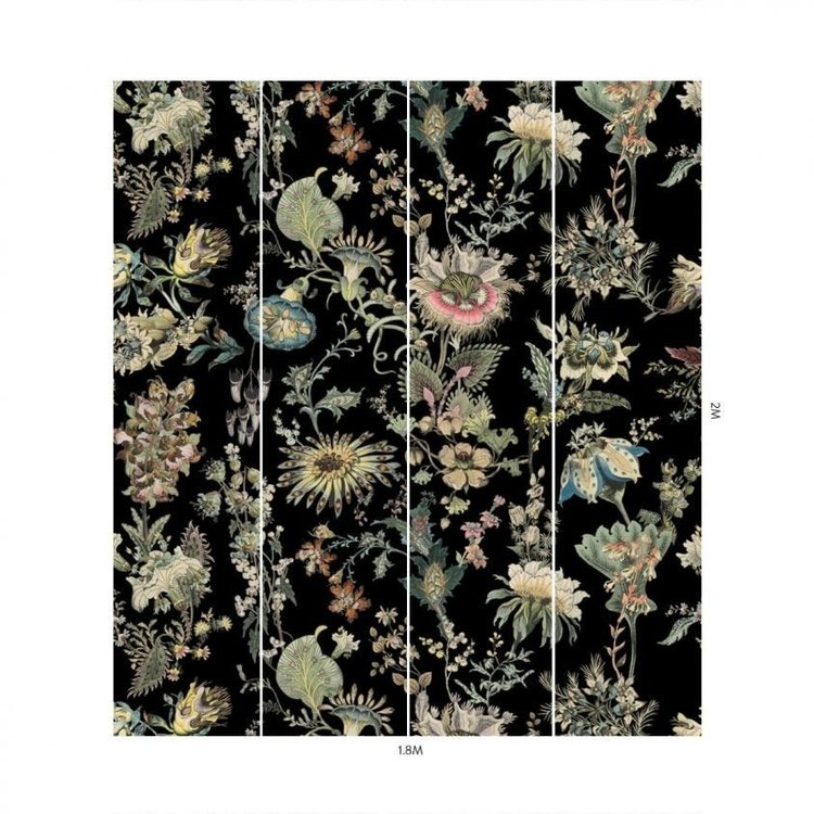 Een denkbeeldig bloemenwonderland ontvouwt zich over FLORA FANTASIA. Geschilderd in glorieuze waterverf tegen een prachtige 'Bisque-Pink' achtergrond, is dit behang onze moderne hervertelling van een print die we vonden in 'Fleurs de Fantaisie' van J. Buchert: een buitengewoon boek met fantasiebloemen uit de jaren 1880, het is zo zeldzaam dat er vandaag de dag nog maar een paar exemplaren in de wereld bestaan.