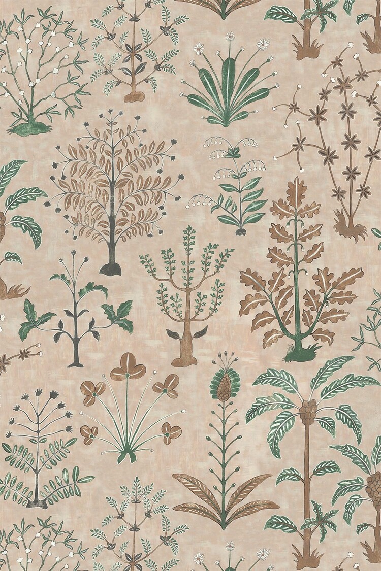 Cynthia is een behang geïnspireerd op antieke botanische prints. Deze muurbekleding van Josephine Munsey, uit de collectie Portfolio 2, toont handgeschilderde bloemen en bladeren. Een subtiel behang dat perfect is voor een botanisch, natuurlijk en zacht interieur.