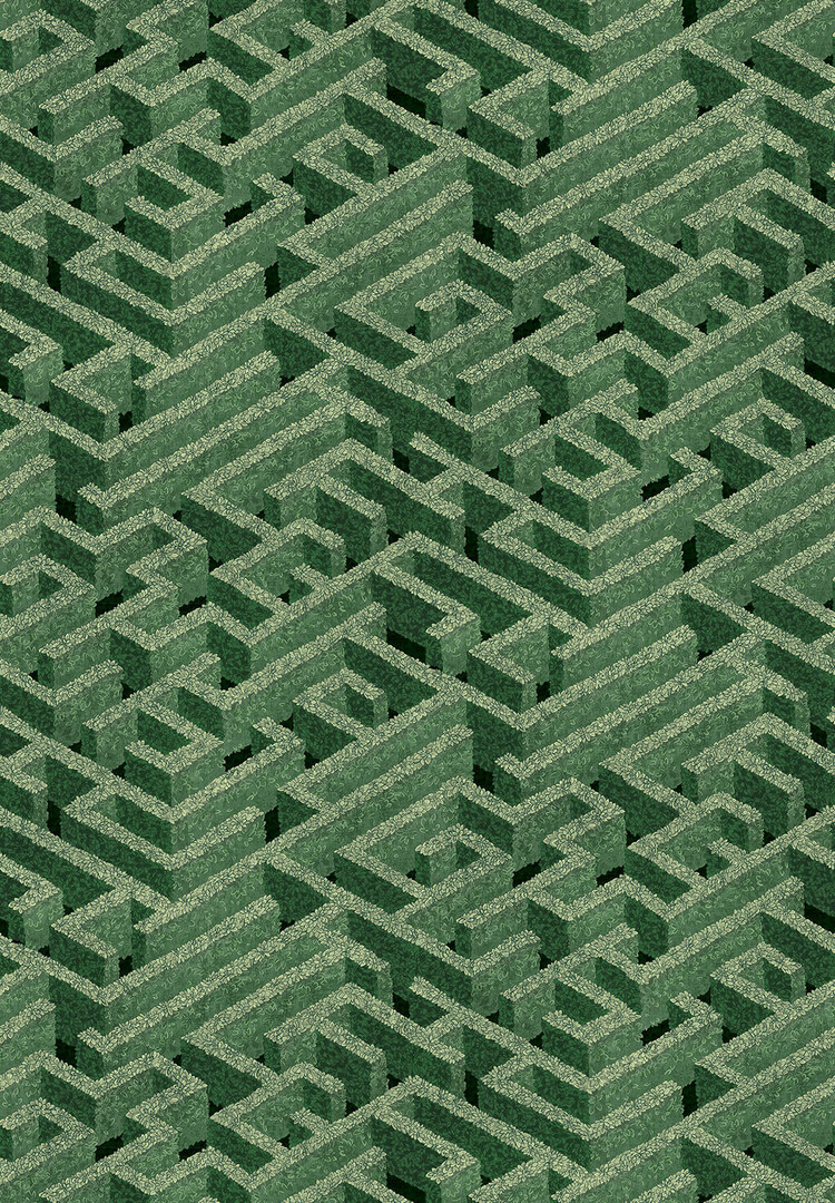 Labyrinth behang is geïnspireerd door de wiskundige ontwerpen van Escher. Deze muurbekleding van Josephine Munsey, uit de collectie Portfolio 1, toont een labyrint van groene hagen. Dit is een bijzonder behang met een knipoog dat perfect is voor een botanisch, speelse en grafisch interieur.