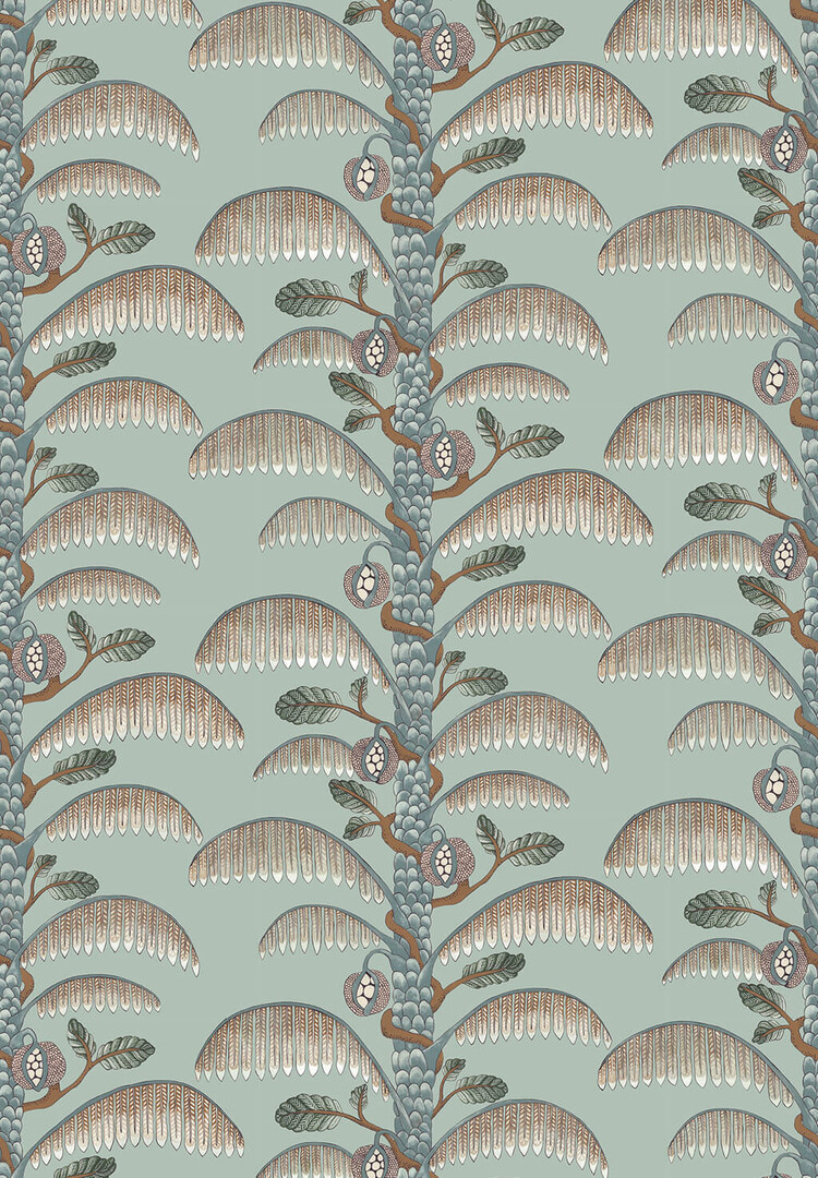 Palm Stripe is een behang dat is geïnspireerd op tropische vormen. Deze muurbekleding van Josephine Munsey, uit de collectie Portfolio 2, toont gestileerde strepen waaruit bladeren en vruchten groeien. Een bijzonder behang dat perfect is voor een uniek, artistiek en botanisch interieur.