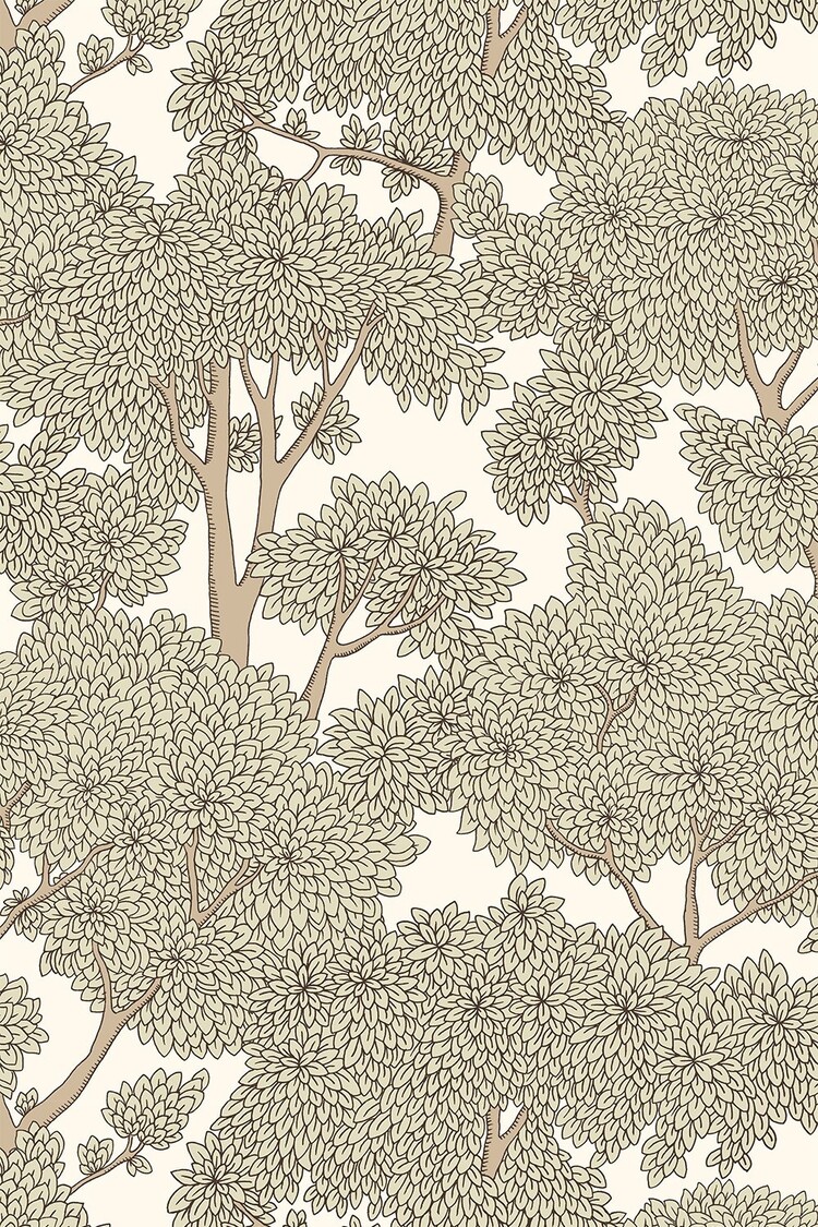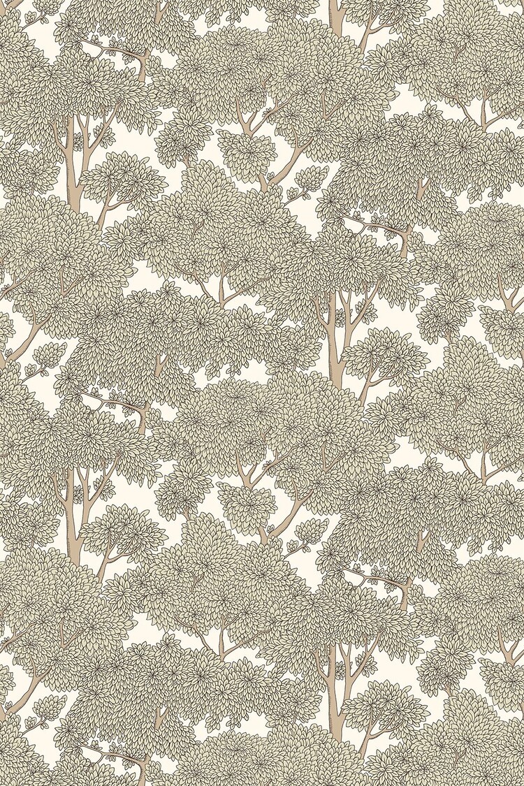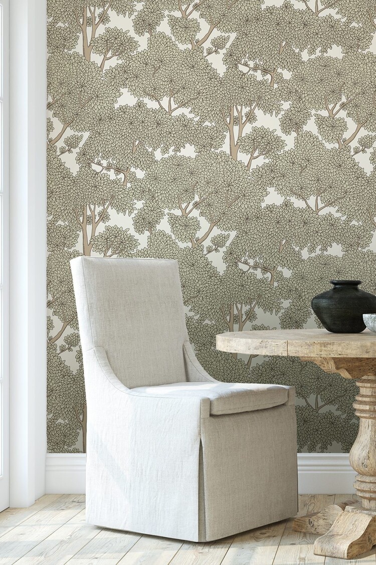 Stockend Woods behang toont bomen met weelderige bladeren. Deze muurbekleding van Josephine Munsey, uit de collectie Portfolio 1, is een mooi behang dat perfect is voor een romantisch, rustig en natuurlijk interieur.