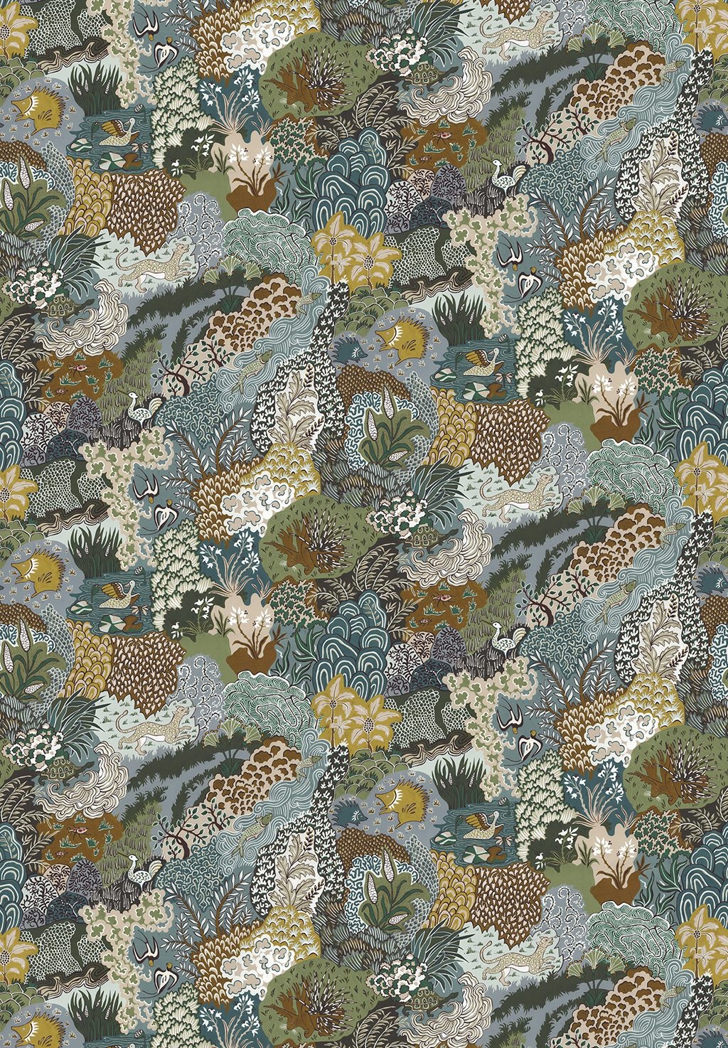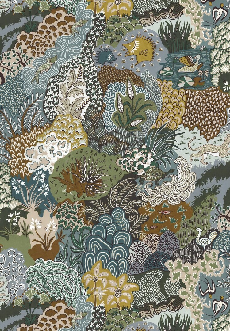Whimsical Clumps is een behang met een speels ontwerp. Deze muurbekleding van Josephine Munsey, uit de collectie Portfolio 2, toont handgeschilderde planten en dieren, zoals egels, vissen en watervogels. Een bijzonder behang in aardse tonen dat perfect is voor een botanisch, warm en speels interieur.