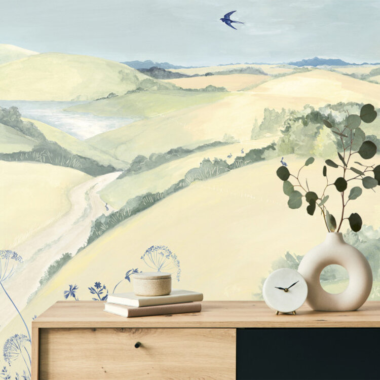 Les Dominotiers is een Frans merk dat staat voor moderniteit, verfijning en fantasie in muurschilderingen. De prachtige collectie ‘A world of Tales’ is een verzameling van 13 panoramische behangen met glooiende landschappen, vredige meren in zachte kleuren, zwart-wit of veel kleurige bossen met Art-Deco-accenten of bergen in zandkleuren.