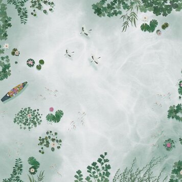 C´est un jardin extraordinaire van Les Dominotiers bestaat uit een collectie panoramisch behang met als thema buitengewone tuinen. Denk aan bijvoorbeeld een tuin vol bloemen, een zwevende tuin of een nachtelijke tuin. Droom weg bij de dessins in gouache, aquarel of potlood.
