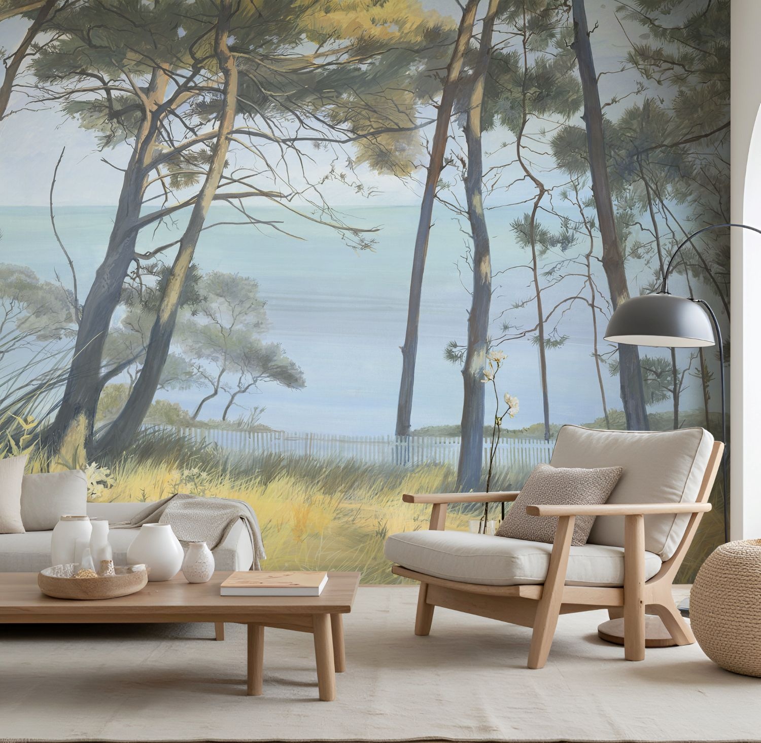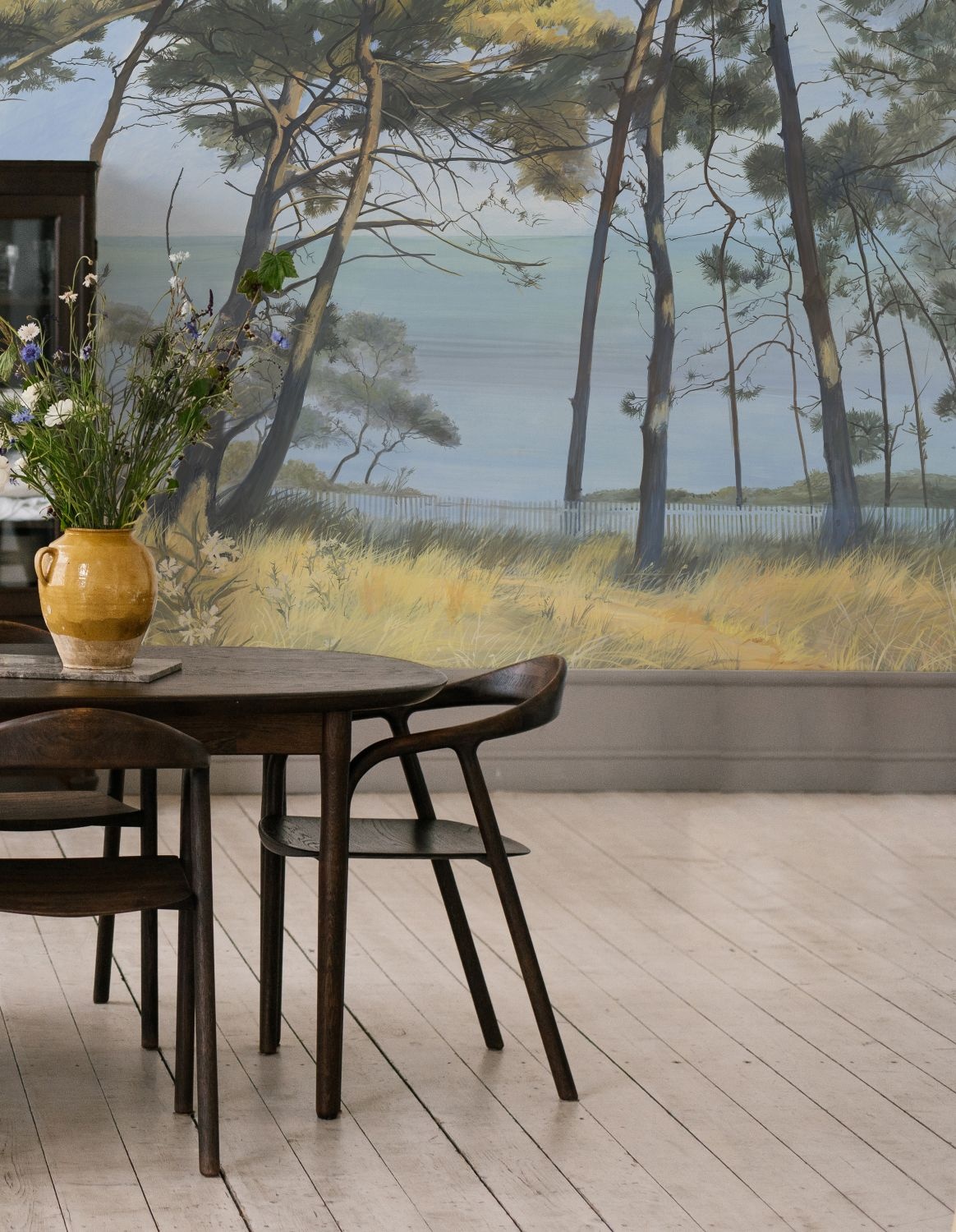De collectie Douce France is een panoramische behangcollectie van Les Dominotiers, een Frans merk dat bekend staat om z’n stijlvolle muurschilderingen en behang op maat. Het idee: een beetje als een schetsboek dat je doorbladert na een reis — pure liefde voor de diversiteit van het Franse landschap, van kust tot bergen, van marais tot mediterrane stadjes.