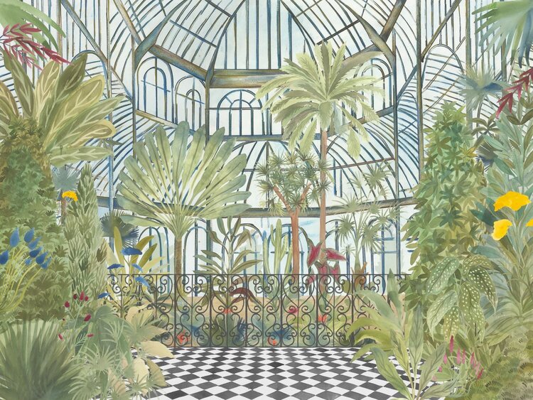 C´est un jardin extraordinaire van Les Dominotiers bestaat uit een collectie panoramisch behang met als thema buitengewone tuinen. Denk aan bijvoorbeeld een tuin vol bloemen, een zwevende tuin of een nachtelijke tuin. Droom weg bij de dessins in gouache, aquarel of potlood.