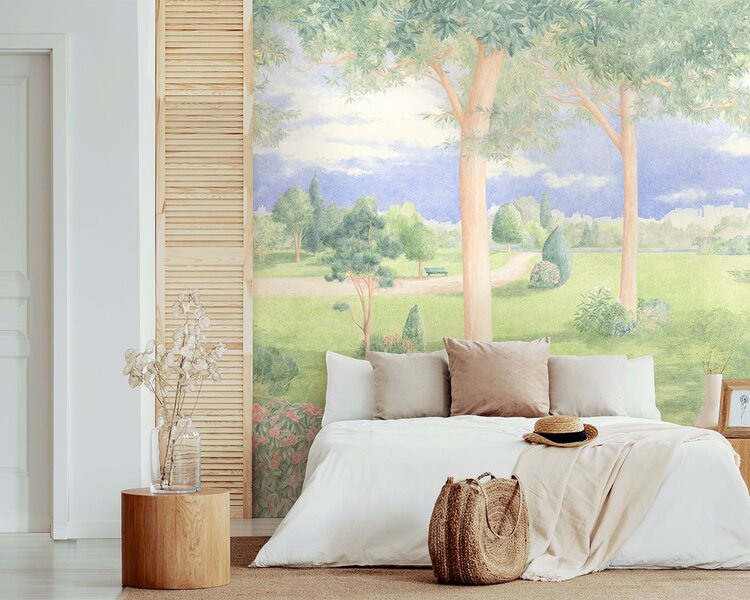 C´est un jardin extraordinaire van Les Dominotiers bestaat uit een collectie panoramisch behang met als thema buitengewone tuinen. Denk aan bijvoorbeeld een tuin vol bloemen, een zwevende tuin of een nachtelijke tuin. Droom weg bij de dessins in gouache, aquarel of potlood.