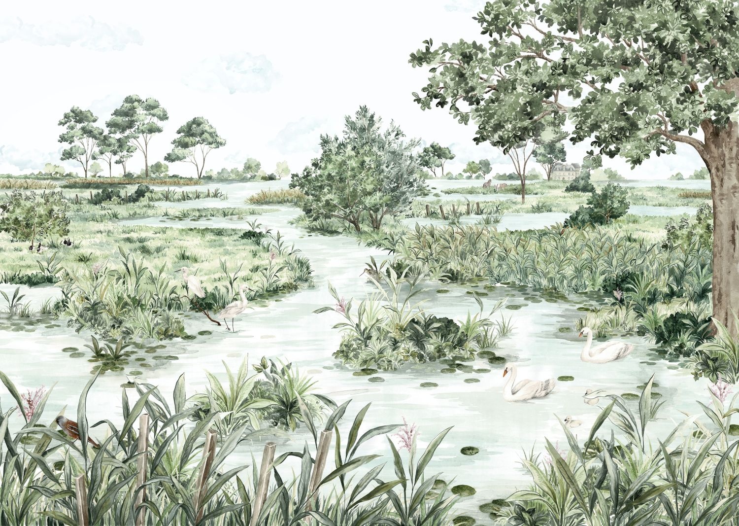 De collectie Douce France is een panoramische behangcollectie van Les Dominotiers, een Frans merk dat bekend staat om z’n stijlvolle muurschilderingen en behang op maat. Het idee: een beetje als een schetsboek dat je doorbladert na een reis — pure liefde voor de diversiteit van het Franse landschap, van kust tot bergen, van marais tot mediterrane stadjes.