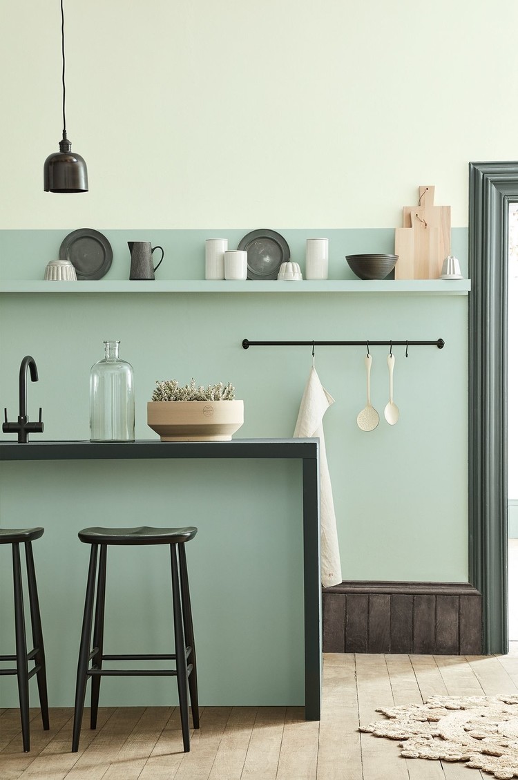 Dit is Aquamarine Mid: een prachtige groentint. Deze verf van Little Greene is veelzijdig, neutraal en zacht. De perfecte verf voor een tijdloos, sfeervol en klassiek interieur.