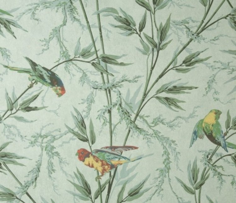 Een kleurrijk papegaaienmotief, bijna geheel gebaseerd op een van de behanglagen, die werd verwijderd uit de achterkant van een kast op de begane grond van een 18e-eeuws rijtjeshuis, dat tegenover het Great Ormond Street Children's Hospital stond. Het ontwerp werd aan het eind van de 19e eeuw machinaal gedrukt op cellulosepapier.