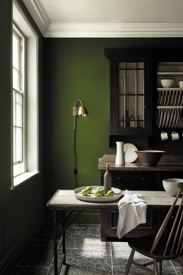 Dit is Jewel Beetle: een donkere groentint. Deze verf van Little Greene is rijk, sprekend en warm. De perfecte verf voor een tijdloos, sfeervol en luxe interieur.