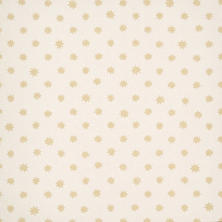 Een abstract behang dat ondanks zijn eigentijdse uitstraling waarschijnlijk dateert uit het begin van de 19e eeuw. Dergelijke ontwerpen waren destijds enorm populair. Het originele kleurenschema, met oranje sterren op een roze achtergrond, werd ontdekt op een bovenverdieping van een commercieel gebouw. Dit gebouw is in het begin van de 19e eeuw gerenoveerd, maar was waarschijnlijk veel ouder.
