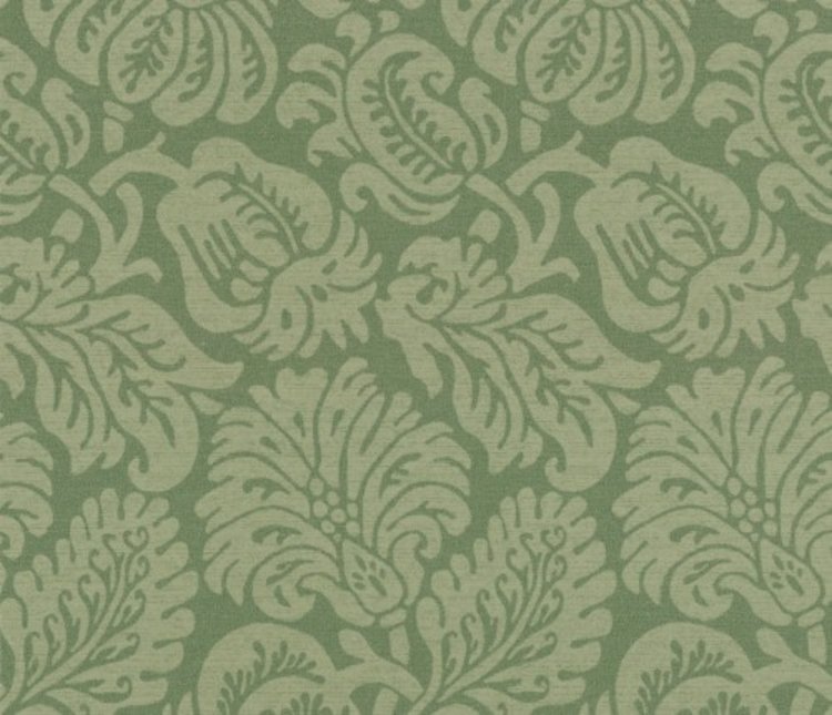 Een typisch historisch damast, waarvan de ontwerpbron oorspronkelijk een geweven zijde was uit de 19e eeuw. Dit effect wordt nu door de druktechniek nagebootst. Net als bij het ontwerp ‘High Street’ uit de collectie London Wallpapers III, zijn er van dit patroon drie voorbeelden bekend, afkomstig van meerdere locaties, wat het aannemelijk maakt dat het op vrij aanzienlijke schaal geproduceerd werd vanaf de 18e tot het einde van de 19e eeuw. Dit komt overeen met de productiemogelijkheden van de behangindustrie in die periode.