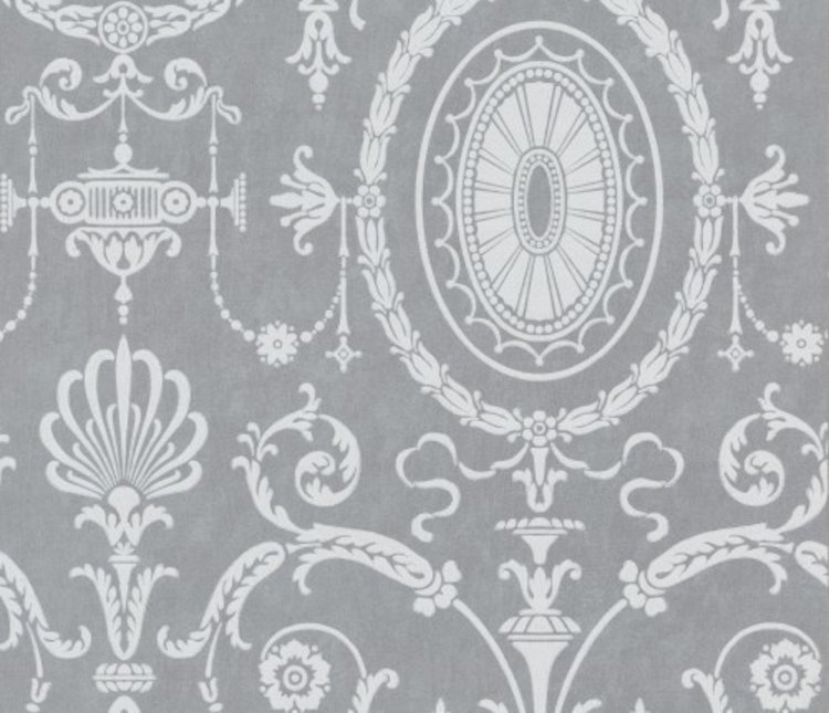 Dit behangpapier wordt met een enkele kleur gedrukt en is daarmee het jongere zusje van het Marlboroughontwerp, met dezelfde kwetsbare elegantie. Verbazingwekkend is dat beide patronen gevonden zijn in hetzelfde pand, Marlborough House, dat uitkijkt over St James’ Park. De datum geeft de waarschijnlijke oorsprong weer van het in Marlborough gebruikte behang. Het ontwerp zelf heeft neoklassieke trekjes, die eerder behoren tot de interieurarchitectuur, wat in de vroege 19e eeuw in de mode was.