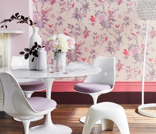 Paradise ( c1940 ) viert een echt rijke mix van stijlen . De Engels Erfgoed eigendom document waaruit dit artikel wordt getrokken is eigenlijk een uit de 20e eeuw stuk , maar het onderwerp - exotische flora en de bekende oosterse ho -ho vogels - is klassiek oude Chinoiserie , terwijl de kleur in het origineel is erg veel in de stijl van een 19e -eeuwse Franse papier. Dit ontwerp behoudt oversized herhaling van het origineel en is gereproduceerd in zes prachtige kleuren.