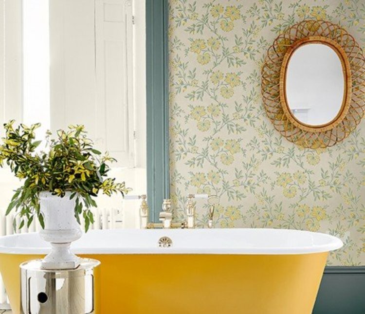 Stitch (ca. 1940) is geïnspireerd op geborduurde chintzkatoenen. Het gebruik van meanderen (dot-work) was populair bij borduren en drukken, vooral in een tijd waarin blokdruk werd gezien als een statusaanduiding. In de late 19e en ver in de 20e eeuw waren sierlijke patronen in het huis een opvallend symbool van rijkdom en geassocieerd met welvaart. Door het gebruik van twee printkleuren is dit papier bijzonder goed te combineren met verfkleuren en andere elementen in de ruimte.