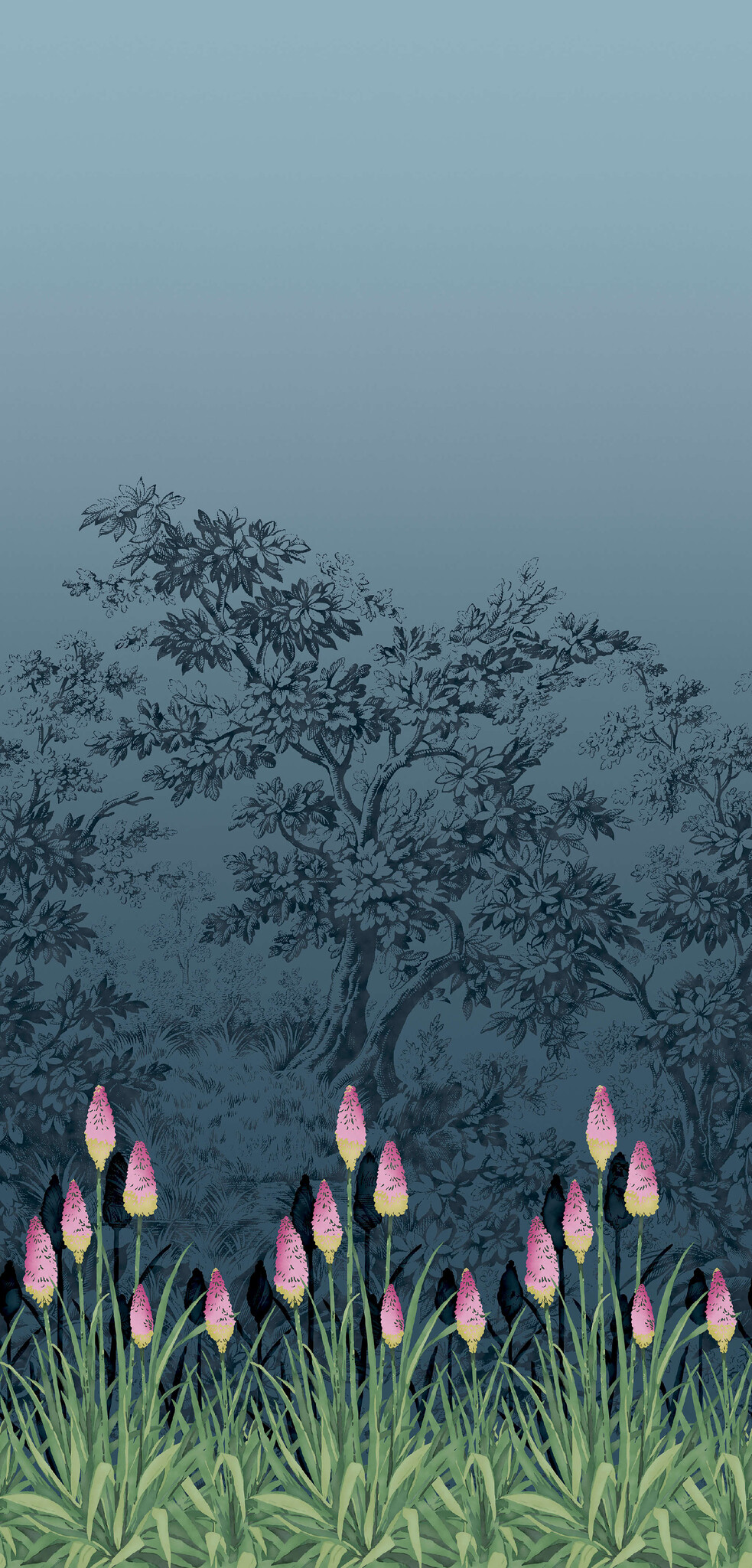 In dit behangdessin zijn felgekleurde kniphofia bloemen gebruikt. De bekendere Nederlandse naam is fakkellelie of fakkel (deze komen oorspronkelijk uit Afrika, maar zijn vernoemd naar de Duitse tuinbouwdeskundige Johan Hieronymous Kniphof). In de archieven van English Heritage staat dat deze bloemen met de hand zijn geschilderd en op maat zijn gemaakt op een eerder aangebrachte wandbekleding in een gebouw uit de late 18e eeuw aan Upper Brook Street. Little Greene paste het Stag Toile-motief aan als natuurlijke achtergrond voor de fakkellelies.